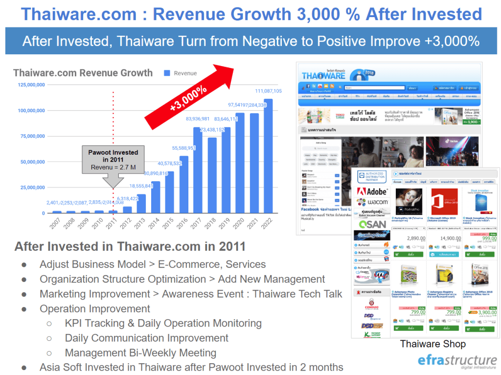 การลงทุนและทำธุรกิจของ Pawoot & Efrastructure ตั้งแต่ 1999