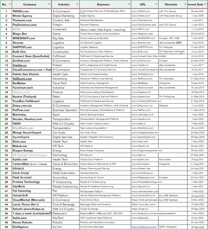 รายชื่อบริษัทที่เข้าไปลงทุนทั้งหมด